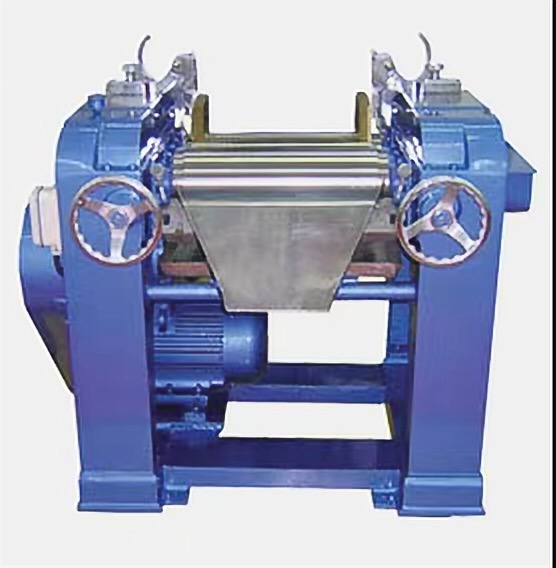三輥研磨機適用膏體或高粘度物料使用。該機通過水平的三根輥筒的表面相互擠壓,手動式調(diào)節(jié)輥筒之間的間距,以不同速度的摩擦達到研磨效果。可裝有緊急制動按鈕,防止落入異物導(dǎo)致的設(shè)備損壞。輥子使用特殊硬質(zhì)合金澆鑄而成;也可以使用大理石材質(zhì)。傳動采用鏈條傳動、齒輪調(diào)輥。